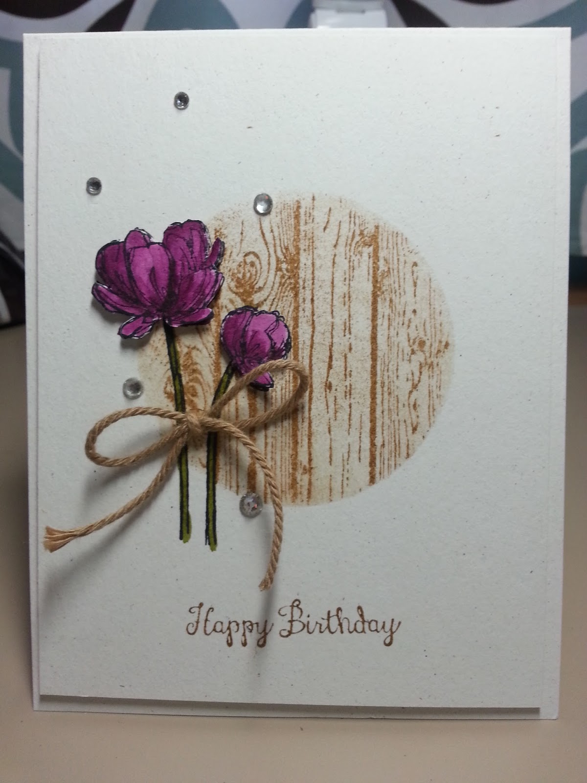 Un mask ovale, un tampon "bois" ici imitation parquet, sur un rectagle de bazzill blanc tramé. la couleur est obtenue avec l'encre Distress Pumiced Stone appliquée à l'éponge.